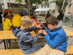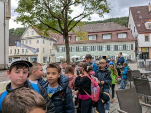 Am 08.07. fuhren wir mit dem Bus nach Blaubeuren und besuchten das Urgeschichtliche Museum. Dort hatten wir zunächst eine Führung durch das Mueum und konnten viele steinzeitliche Funde von der Alb bestaunen. Im Anschluss hatten beide Klassen einen Workshop, die Erst- und Zweitklässler*innen stellten steinzeitlichen Schmuck her und die Dritt- und Viertklässler*innen bastelten Lederbeutel. Danach verbrachten wir noch Zeit auf dem Spielplatz und kauften uns in der Stadt noch ein leckeres Eis. Der Ausflug war für alle ein tolles Erlebnis!