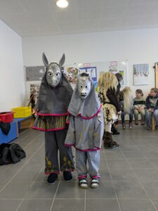 Am Dienstag den 27.01. besuchten uns die „Esel“ und „Ecos“ in der Grundschule. Dazu hatten wir uns alle in der Aula versammelt und hörten gespannt zu, was uns über die Geschichte und die Entstehung der beiden Zünfte berichtet wurde. Natürlich hatte beide Zünfte auch ihr Häs dabei, was sie uns genau vorstellten und ein paar Schülerinnen durften sogar ein Kinderhäs anprobieren. Nun freuen wir uns auf den Fasching in der Schule und die Befreiung durch die Narren und das Narrenbaumaufstellen am „Glombigen Doschdig“.