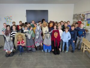 Am Dienstag den 27.01. besuchten uns die „Esel“ und „Ecos“ in der Grundschule. Dazu hatten wir uns alle in der Aula versammelt und hörten gespannt zu, was uns über die Geschichte und die Entstehung der beiden Zünfte berichtet wurde. Natürlich hatte beide Zünfte auch ihr Häs dabei, was sie uns genau vorstellten und ein paar Schülerinnen durften sogar ein Kinderhäs anprobieren. Nun freuen wir uns auf den Fasching in der Schule und die Befreiung durch die Narren und das Narrenbaumaufstellen am „Glombigen Doschdig“.